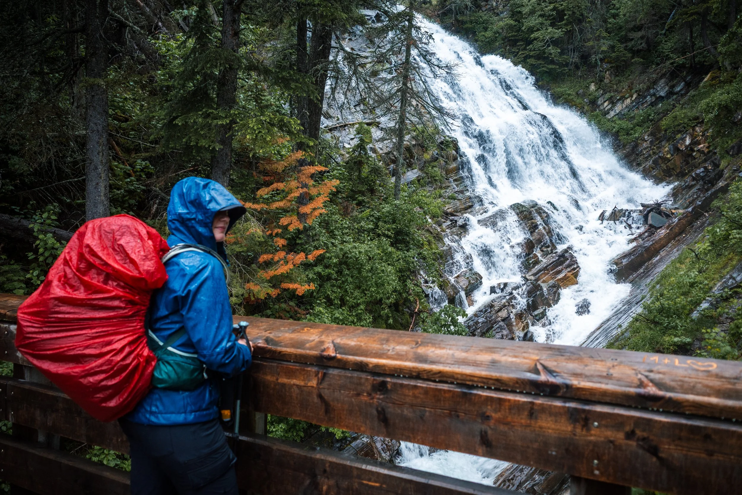 Taking in Upper Bertha Falls in the rain.