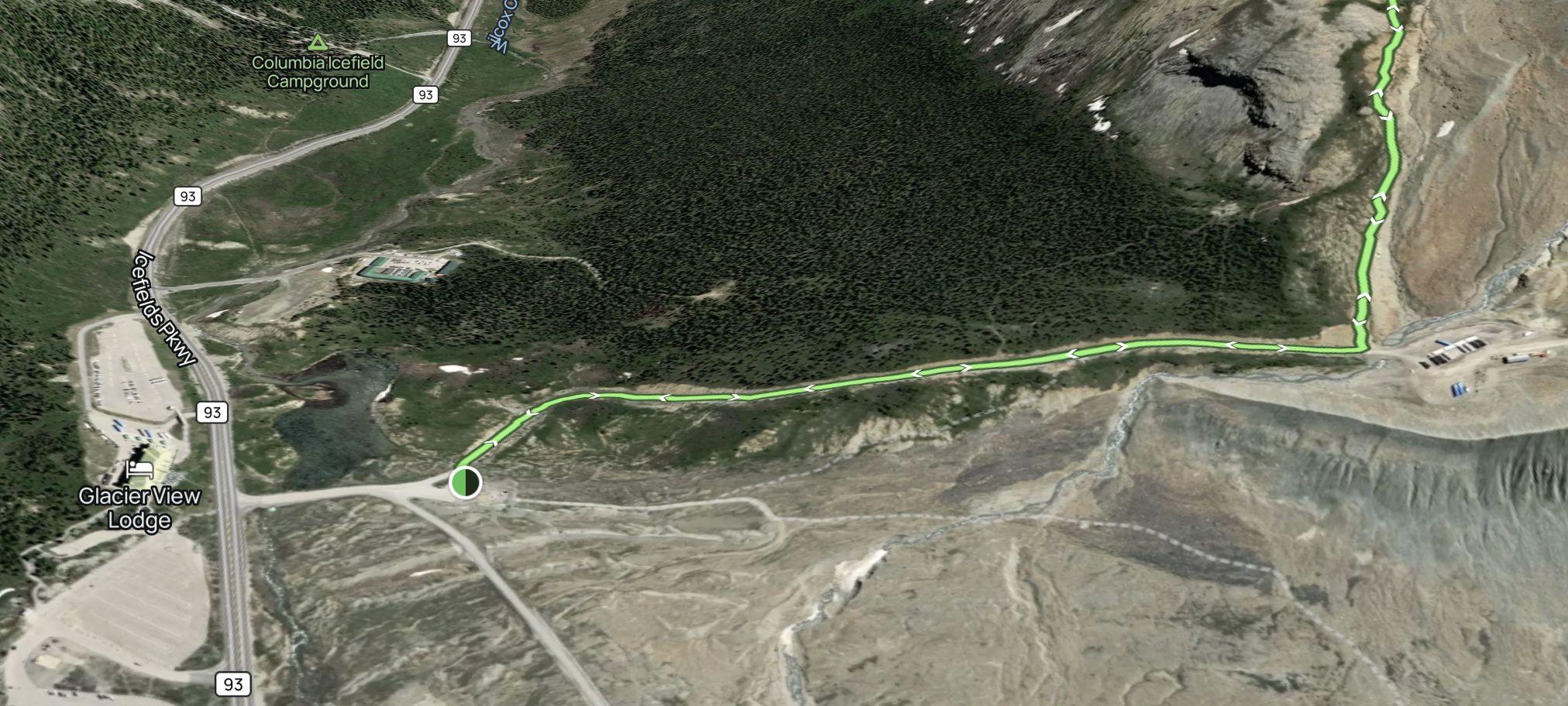 Access: This hiking trail starts at the the Columbia Icefields along the Icefields Parkway around a 2.5 hour drive from Banff heading north or a 1.5 hour drive heading south from Jasper. There’s a carpark just across the road from the Columbia Icefields visitors centre which lies closest to the trailhead. If this car park is full you can always park at the visitors centre and then cross over the road to start the trail.