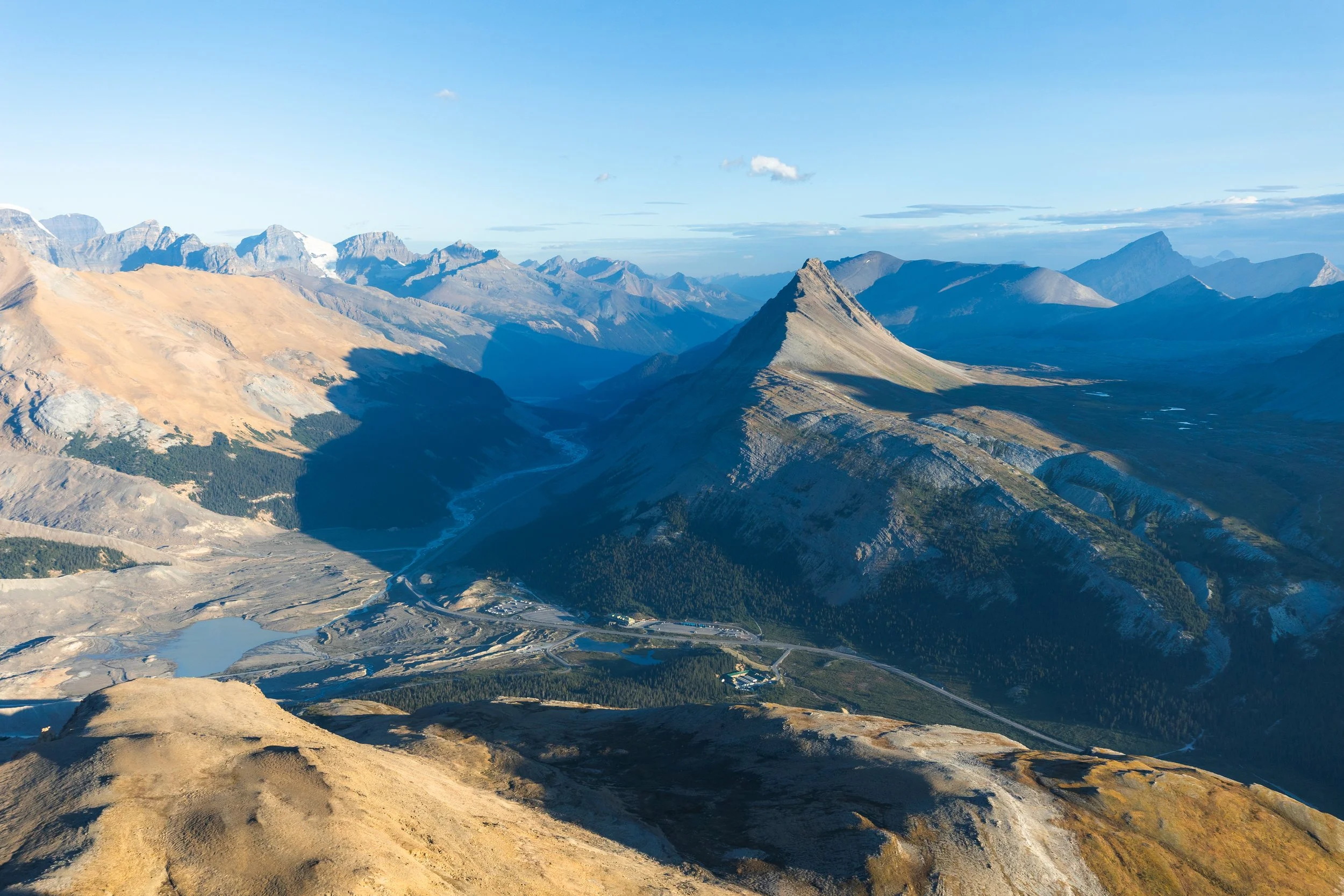 The summit views here are some of the best you’ll see anywhere in the Rockies with Mount Athabasca and glaciers behind and views down the parkway and Wilcox peak in the other direction.