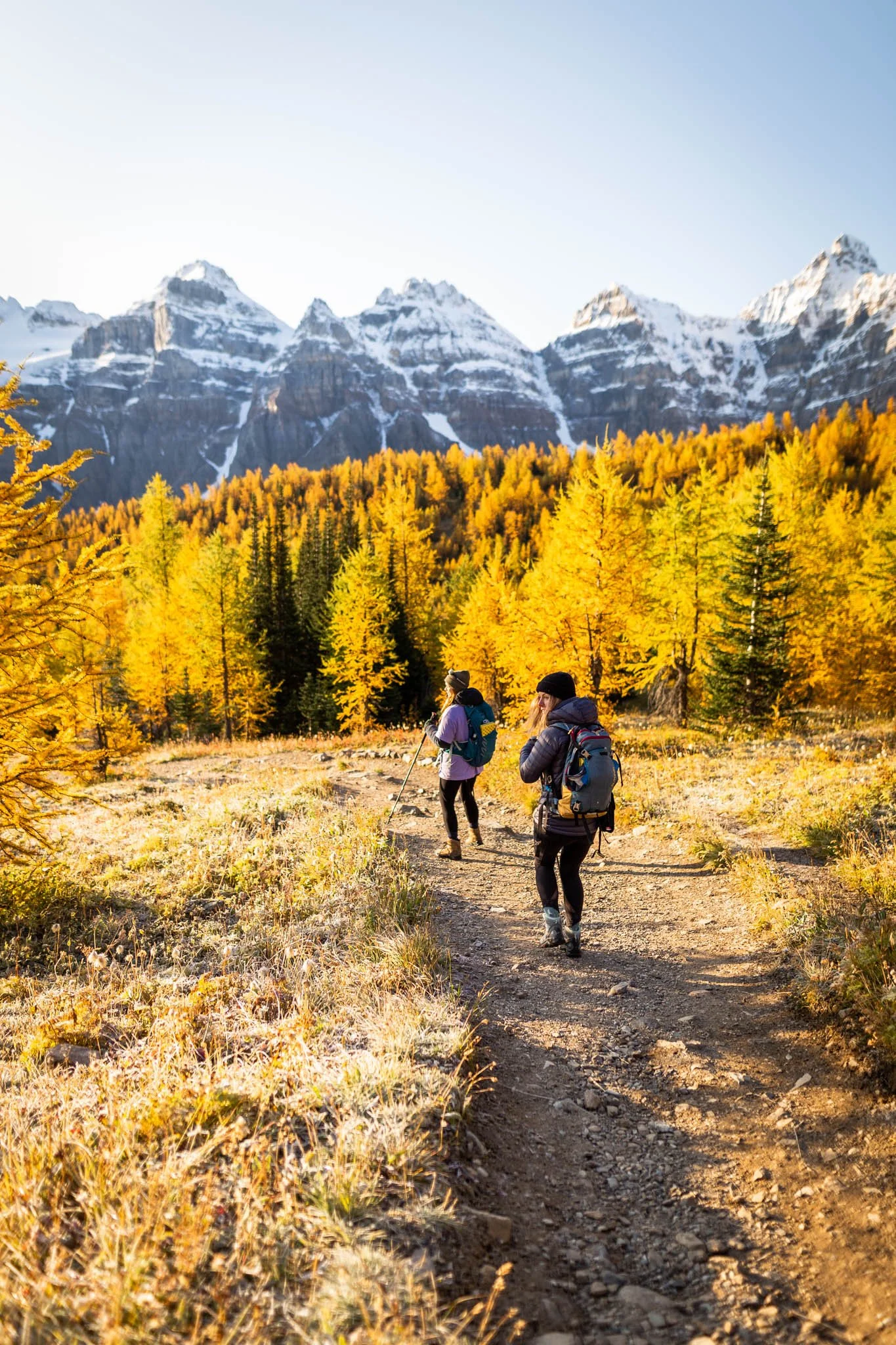 In years gone by I made hiking the Larch Valley for sunrise during fall a yearly tradition. Witnessing a sunrise on this trail is hard to put in to words. The warm light piercing it’s way through the canopy of bright yellow larch needles paired with crisp mountain air and early morning frost is a thing of beauty!