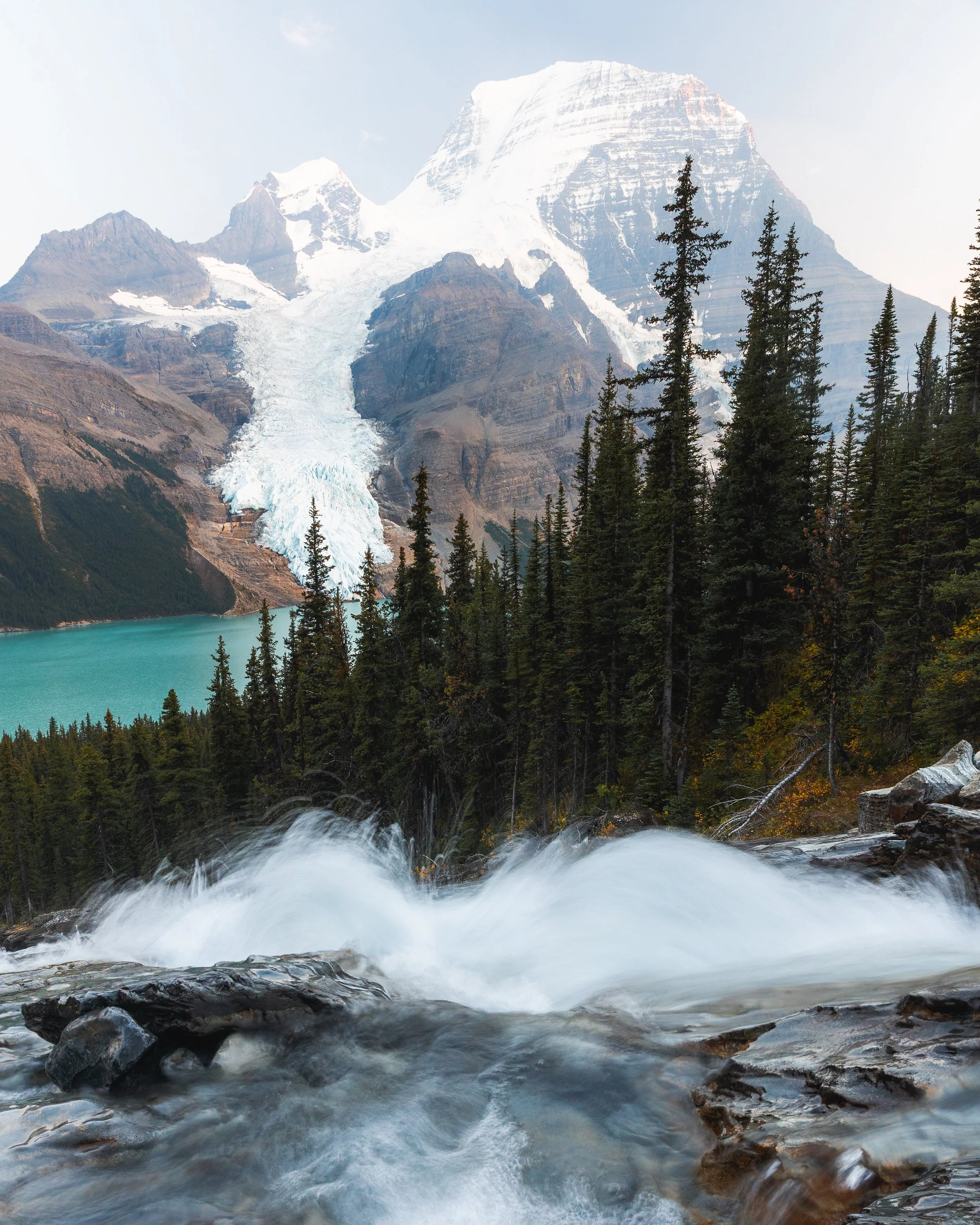 Once you’ve had your fun soaking in the spray of Emperor Falls it’s only a short 5 kms from this point to the shore front of Berg lake and it’s namesake campground.