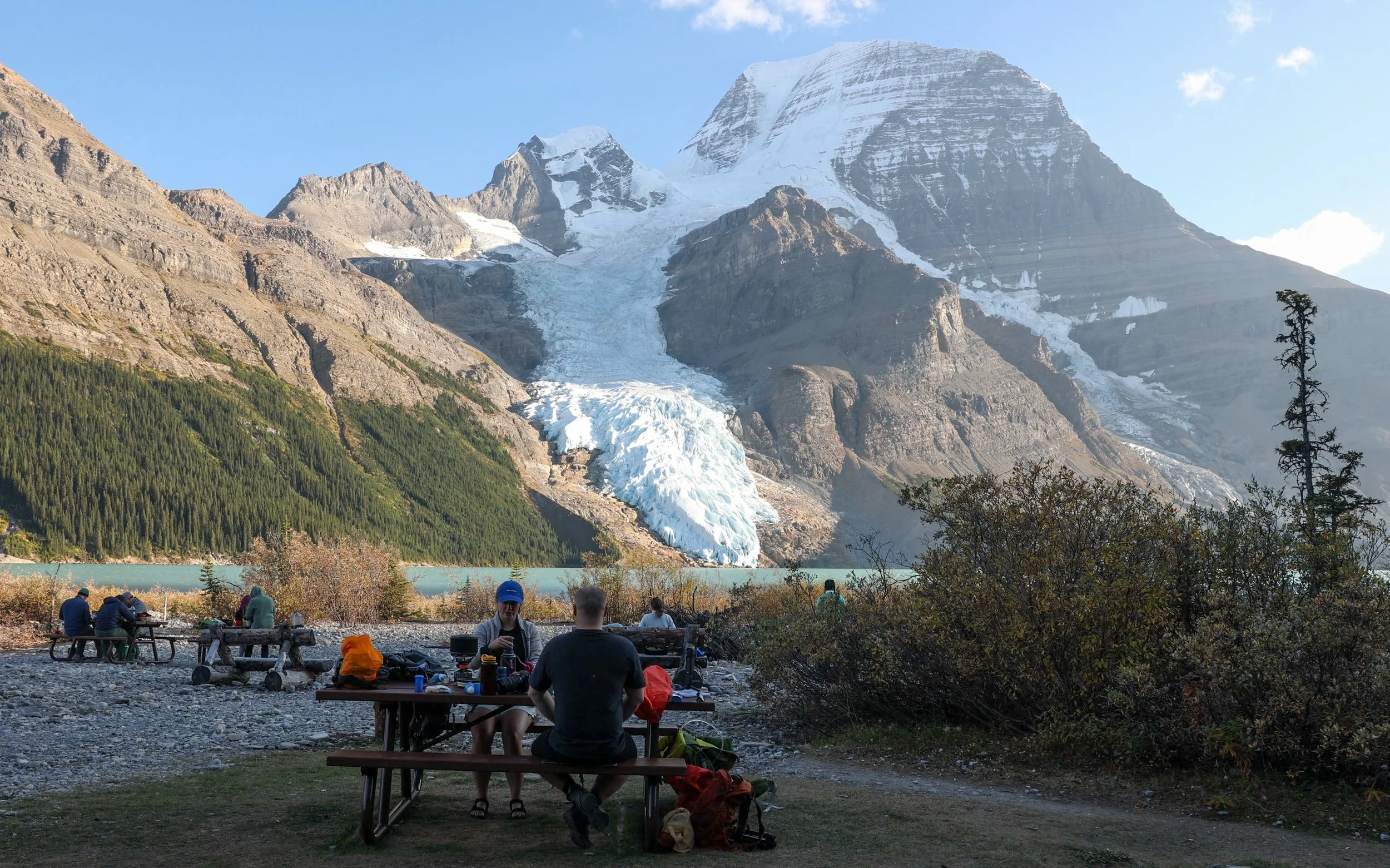 The campsite is fully kitted out with lake side picnic benches, a cooking shelter, compost toilets, tent pads and bear lockers. The majority of the tent pads are in the woods but there is the odd one or two that have views of the lake and Mount Robson. Personally I wouldn’t stress too much about which tent pad you end up with as you’ll spend the majority of your time cooking and eating at the lake side cooking area and shouldn’t be doing either of those things close to where you sleep as to not attract bears! Don’t be like those influencers you see who are happily smiling with a jetboil in front of them sat by their tent with Mount Robson behind, it sets a bad example!