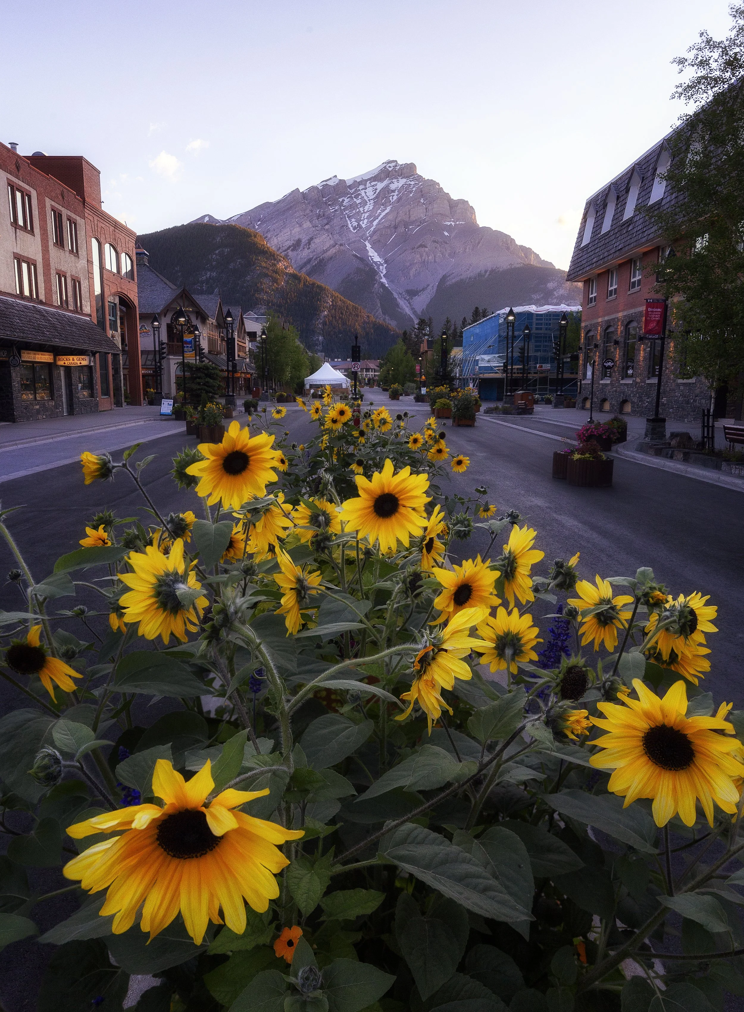 During spring the weather warms up a little you’ll even find beautiful blooms of flowers up and down the main street of Banff Avenue. These allow for some wonderful compositions with Cascade mountain in the background.